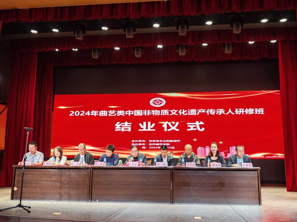 由甘肃省文化和旅游厅主办、beat365官方网站承办的2024年曲艺类中国非物质文化遗产传承人研修班于9月15日15时在学beat365官方网站校本部排演厅举行结业仪式和汇报演出,由民族音乐研究中心顾问孔庆浩教授主持。