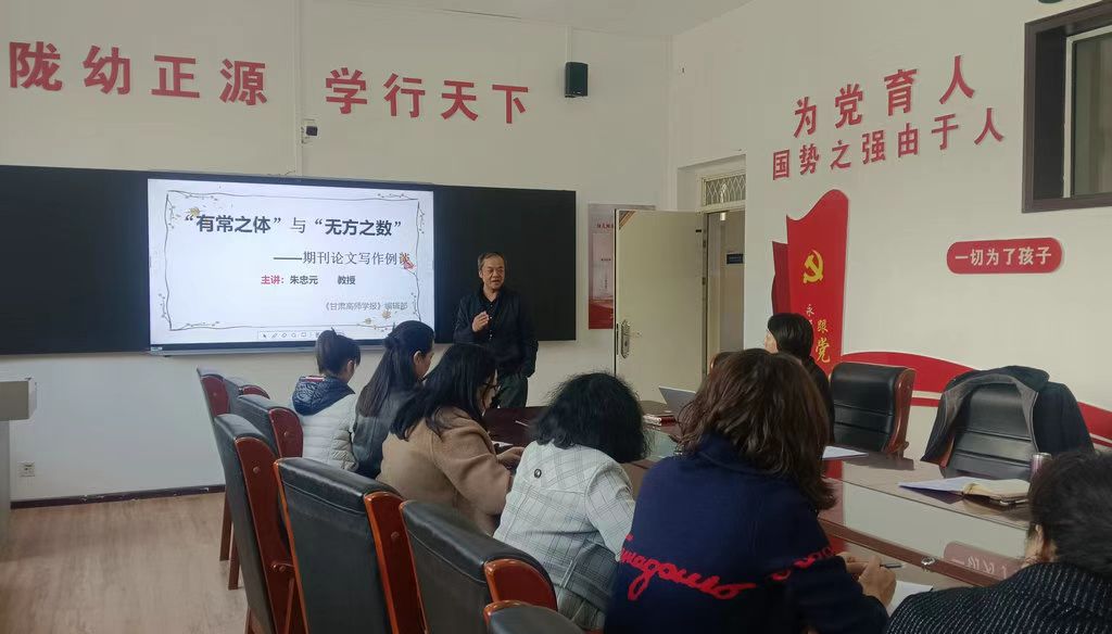 11月14日下午,幼儿师范学院举办学术期刊论文写作专题辅导,《甘肃高师学报》编辑部负责人朱忠元教授应邀作题为《“有常之体”与“无方之数”—期刊论文写作例谈》的讲座,学院负责人及部分中青年教师参加活动。