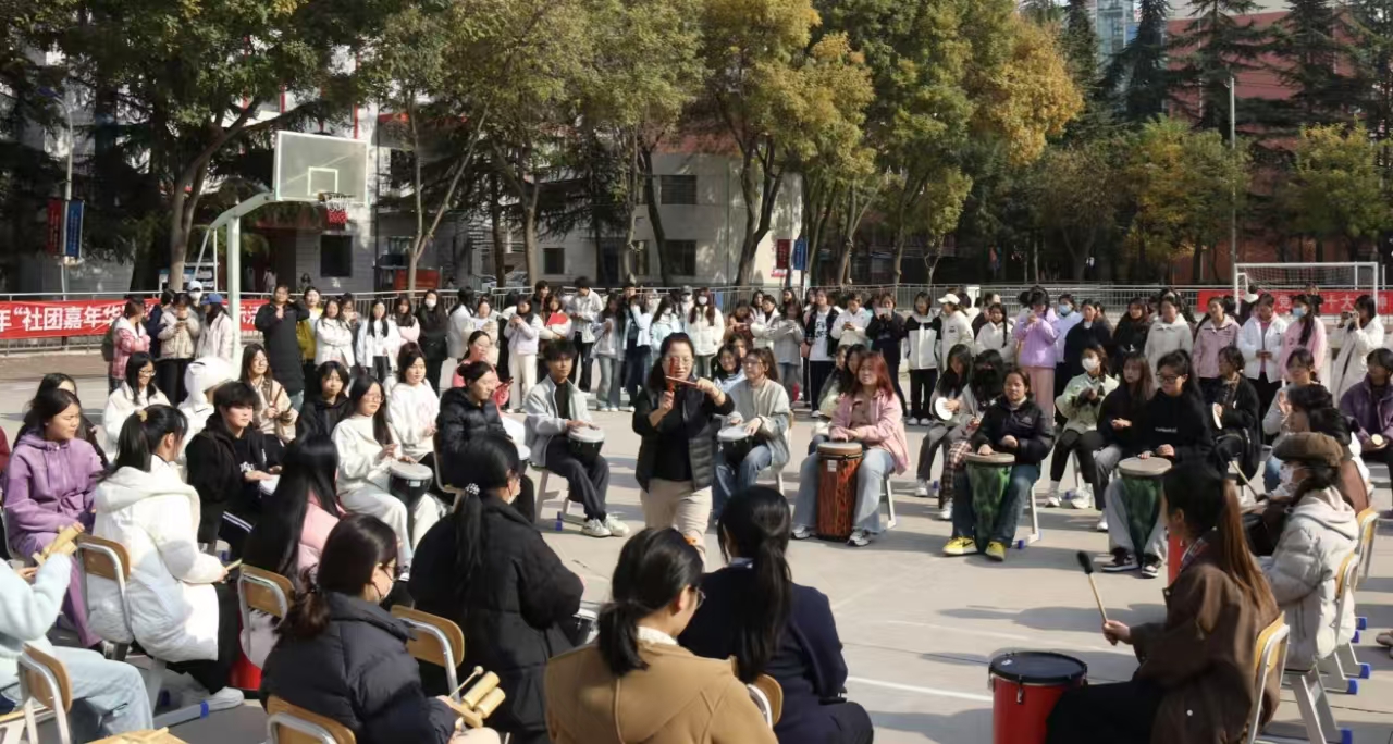 在城关校区的美育主题社团活动中,爱手工·趣生活社团通过工艺美术纤维艺术普及和制作的体验,让更多同学了解纤维艺术。丝路文化创意工坊通过创意设计开展丝路文化研究与创意活动,展现丝绸之路的独特魅力。奥尔夫音乐社团开展鼓圈活动、打击乐的活动,将不同鼓的组合和节奏配合,培养同学们对音乐的节奏感,激发学生对音乐的热爱。学前剧团通过独特的情景剧凸显出专业特色。各社团通过各自独特的艺术形式,展示了校园文化的多样性,提升了学生的艺术文化素养,充分展现了“以美育德”“以德成美”的育人成效,促进学生全面、健康发展。