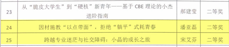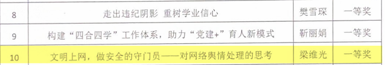 近日,由甘肃省委教育工委、省教育厅统筹指导,教育部高校思想政治工作队伍培训研修中心(西北师范大学)组织开展的2024年全省高校辅导员优秀工作案例征集评选活动结果公布。经个人申报、单位推荐、专家评审等环节,beat365信息工程学院辅导员梁维光申报的《文明上网,做安全的守门员——对网络舆情处理的思考》案例荣获一等奖,环境与城市建设学院辅导员潘亚磊申报的《因材施教“以点带面”,拒绝“躺平”式耗青春》、化学工程学院辅导员宋艾芬申报的《跨越专业迷茫与社交障碍:小晶的成长之旅》案例荣获二等奖。