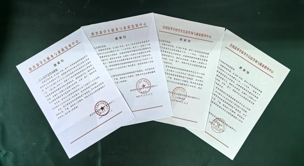 近日,学校档案馆再次收到来自教育部学生服务与素质发展中心的感谢信,档案馆已连续多年收到来自该中心的感谢信。