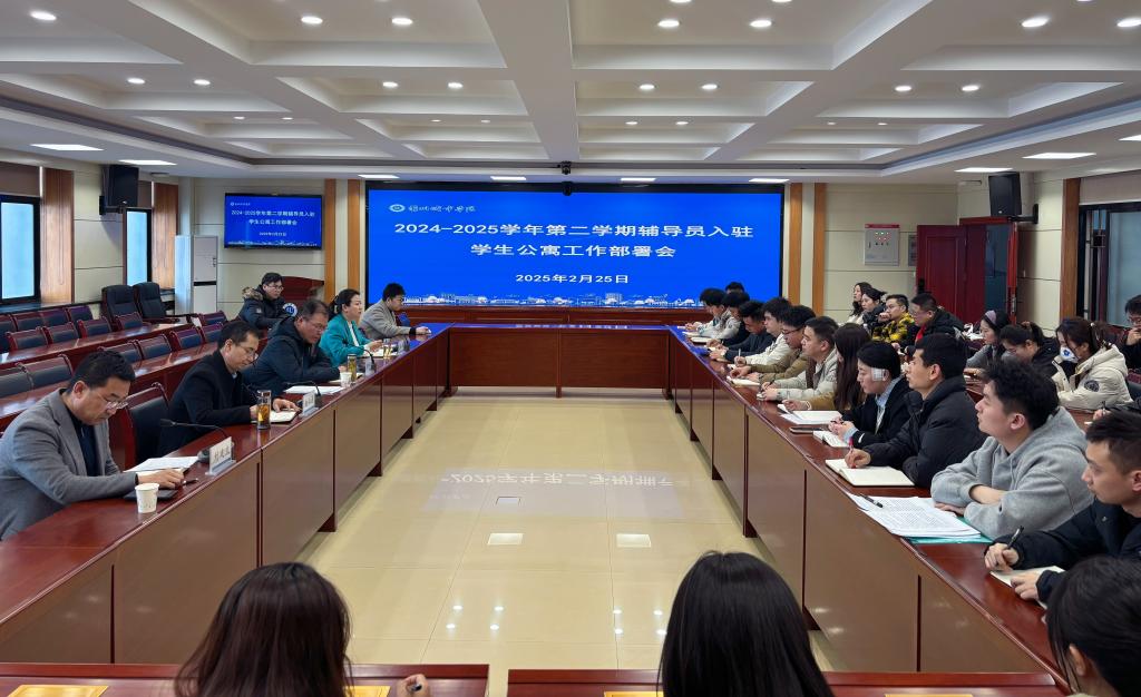 为落实学校《学生发展工程实施方案》,进一步加强beat365辅导员队伍建设,推进辅导员入驻学生公寓工作,提高辅导员素质能力和工作水平,2月25日下午,学校召开2024-2025学年第二学期辅导员入驻学生公寓工作部署会,党委学生工作部负责人、工作人员和全体入驻学生公寓辅导员参加会议。会议由党委学生工作部负责人主持。