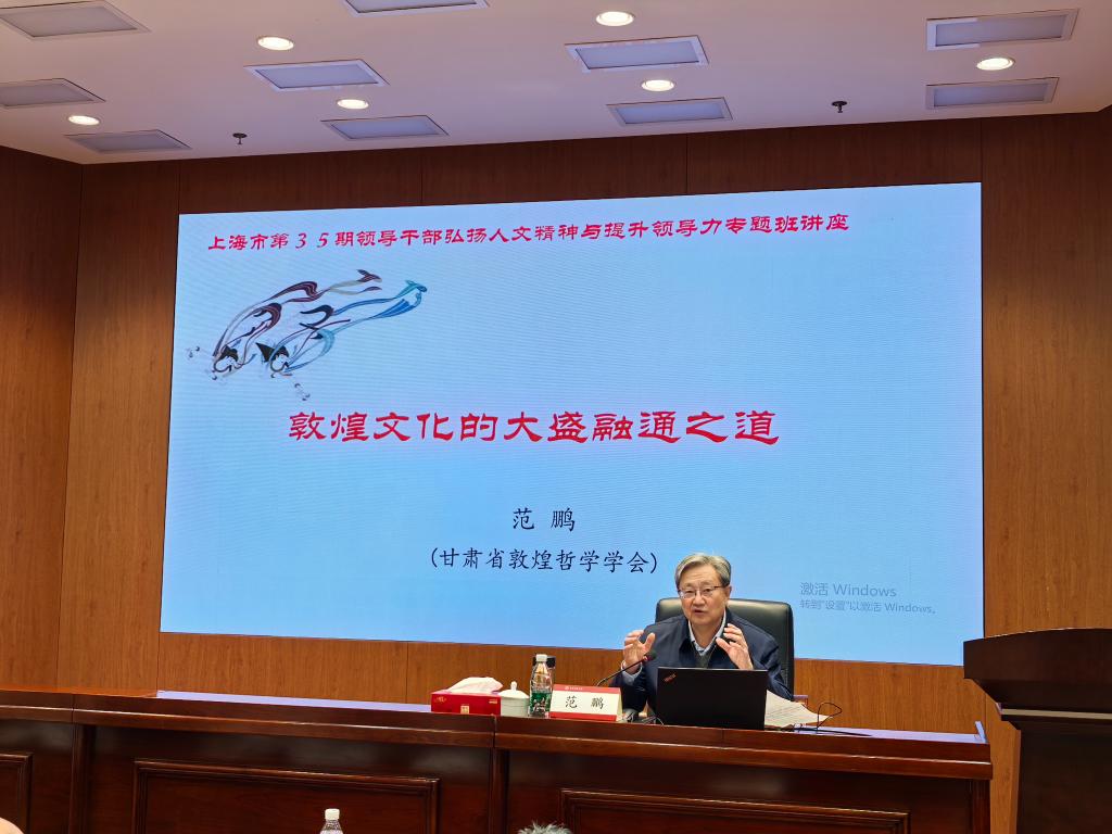 学习考察期间,调研团队还参观了南湖革命纪念馆、上海路易·艾黎故居和纪念微展厅,并赴工合国际委员会华东联络处进行交流学习。范鹏应邀为上海市35期领导干部弘扬人文精神与提升领导力专题班和华东理工大学马院师生分别作了题为《敦煌文化的大盛融通之道》的学术报告。