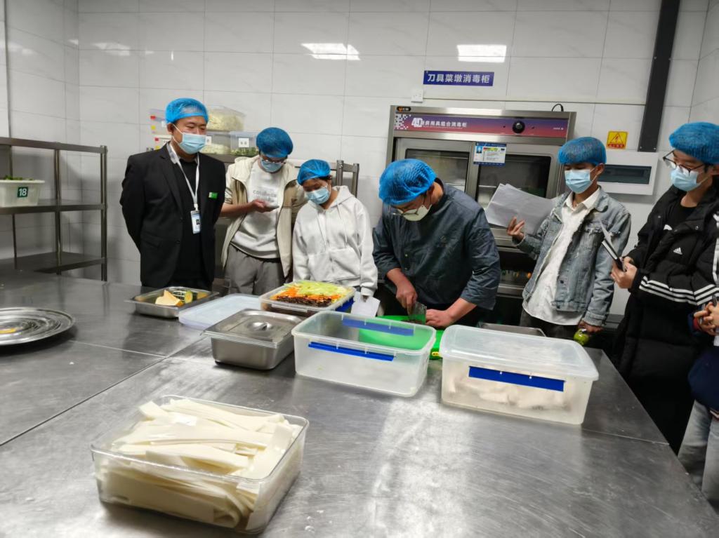 学生代表实地查验了食堂运营状况,从食材的采购、储存、加工制作和餐具消毒等各个环节进行了全面、细致、深入地了解。在饮食服务中心工作人员的耐心介绍下,同学们仔细核验供应商资质,确认每一批次食材溯源信息,确保所有食材来源正规可靠;在仓库,同学们检查食材摆放是否遵循先进先出原则,有无过期变质隐患;在加工间,同学们全程紧盯菜品从初加工到烹饪出锅的每一步环节,监督操作人员是否严格遵守卫生规范;在清洗消毒区,同学们检查消毒设备运行参数,随机抽检餐具洁净度与细菌残留情况。食堂全体工作人员一丝不苟的工作态度和严格规范的操作流程,得到了同学们的认可及好评。
