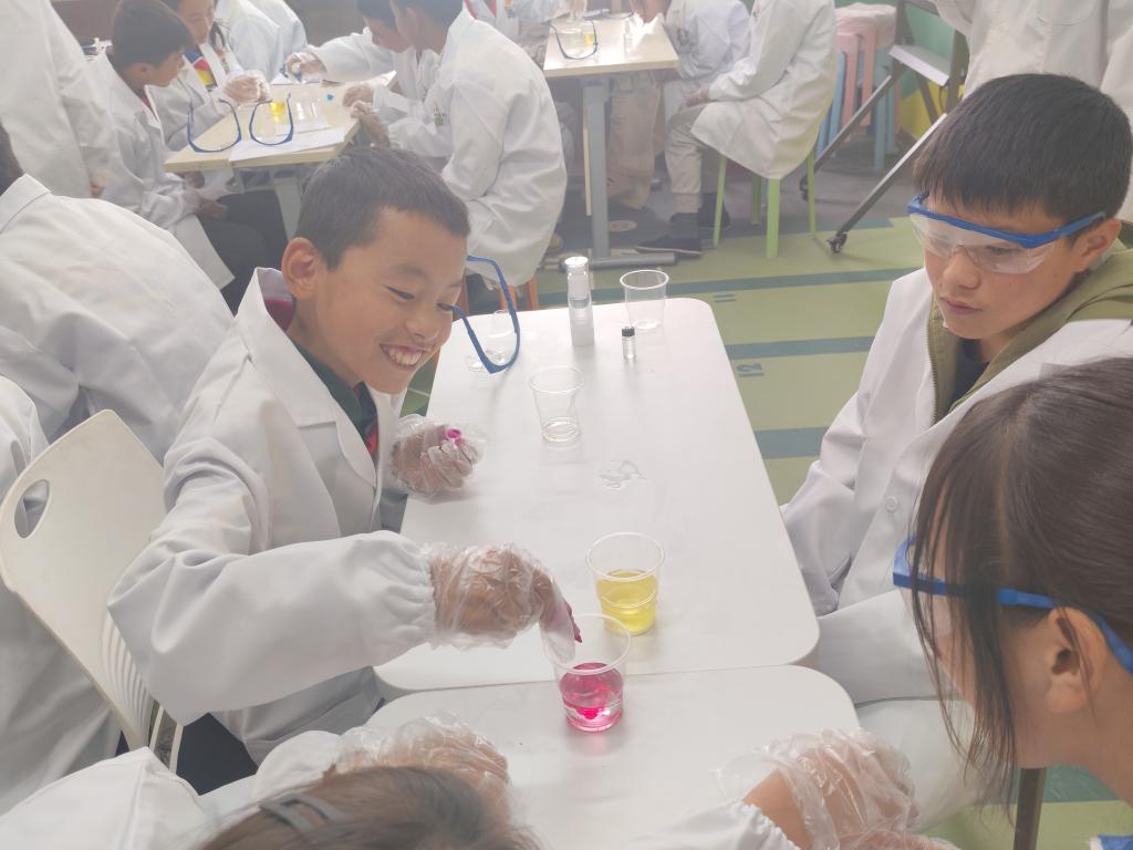 在“中医药文化体验”环节,团队成员展示了艾草、薄荷等中药材,并教授了香囊制作技巧,让孩子们亲手体验中医药的魅力。随后的“小小化学家”实验环节中,“紫甘蓝变色” “熔岩灯”等趣味化学实验激发了孩子们的浓厚兴趣,让他们在动手实践中感受科学的神奇。团队还在甘光小学开设了“垃圾变黄金”——校园肥料工坊科普讲座,引导孩子们了解资源循环利用的重要性。