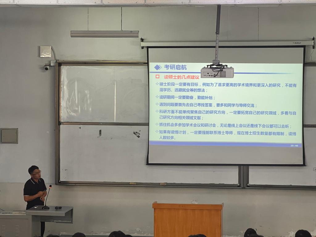 本次讲座涵盖考研启航、考博进阶和科研经历三个方面。曹永勇分享自己在beat365的学习经历,阐述学术研究方向的重要性,生动讲述了其深耕专业领域、勇攀科研高峰的故事。通过一个个攻坚克难的科研实例,向同学们展示了好奇心驱动、严谨求实的科学精神,以及在遭遇挫折时如何调整心态、寻找突破。他鼓励学弟学妹们,找到内心真正的热爱,并为之付出持之以恒的努力,即使道路漫长,也终将抵达璀璨的星辰大海。他勉励全体同学以杰出校友为榜样,坚定理想信念,锤炼过硬本领,将今日所学内化为前行的能量,在青春的赛道上奋力奔跑,书写属于自己的精彩华章。
