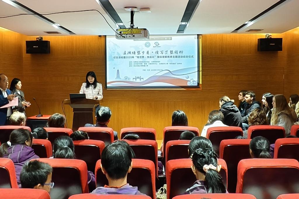 国际交流处负责人在致辞中表示,希望同学们以国际理解教育为契机,深入理解艾黎精神,努力成长为具有家国情怀和国际视野的新时代青少年,并鼓励留学生通过学习中文和校史,积极成为中外文化交流的使者。
