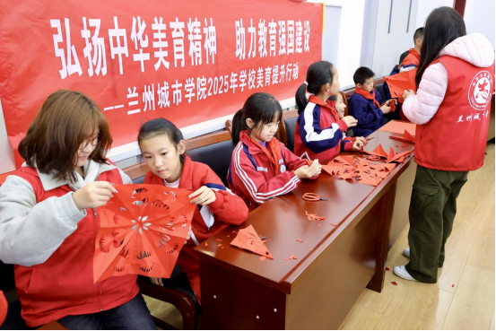 10月31日,学校联合甘肃省红十字基金会,赴兰州市西固区第九十一中学小学部举办“阅读让想象飞驰,剪纸让美好成真”美育实践活动。活动将儿童绘本阅读与非物质文化遗产剪纸艺术相结合,为五十余名五年级学生带来一堂生动有趣的美育启蒙课。