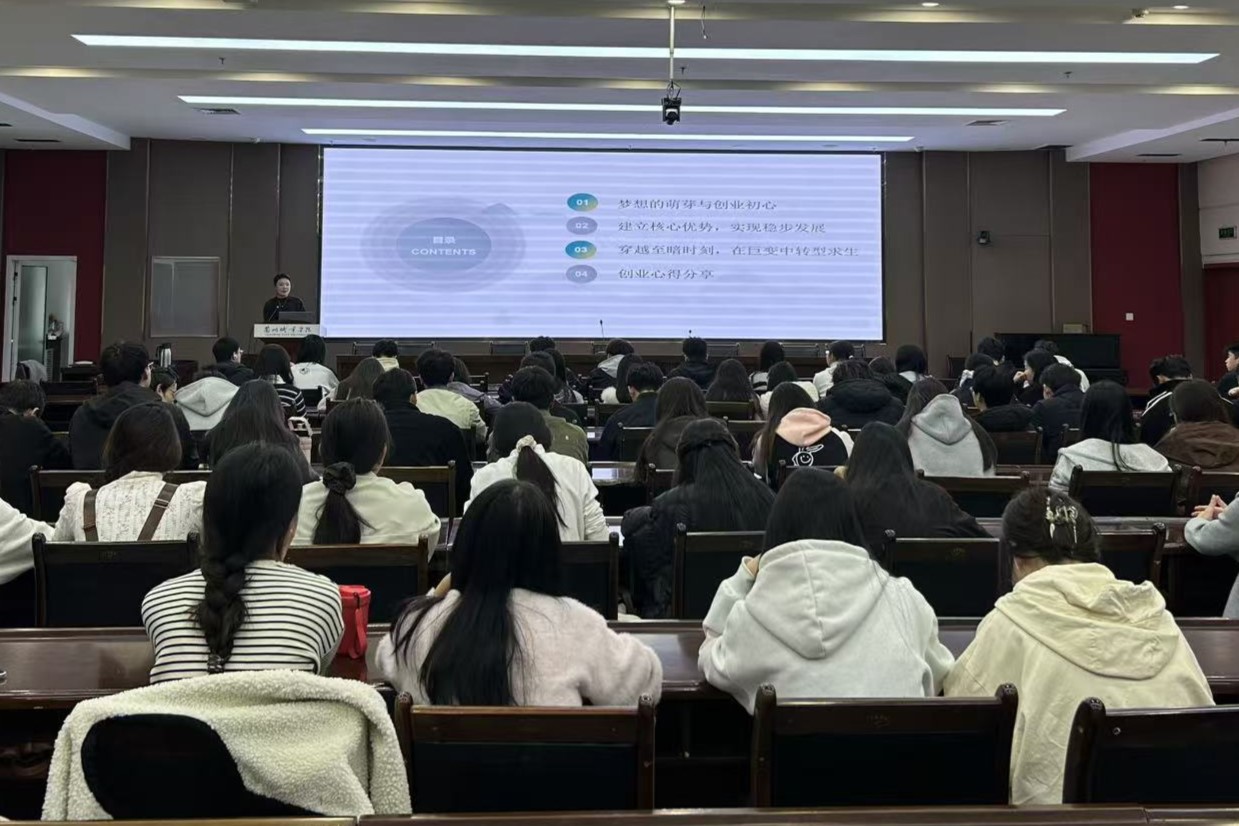 郭添瑞回顾了在校求学时光,分享了自己从一线教师到创办培训学校的成长历程。她结合创业实践,从机构创办、团队建设、课程研发等多个方面,系统讲述了教育创业过程中的经验感悟与面临的挑战,强调教育工作者应始终秉持匠心精神,注重教学质量与育人实效。在互动交流环节,郭添瑞就同学们关心的跨专业发展、课程创新、资源整合等问题给予了细致解答,建议在校同学夯实专业基础,拓宽能力维度,为未来职业发展做好充分准备。