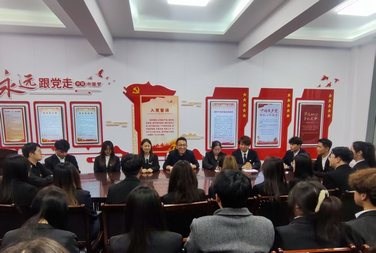 在环境与城市建设学院,校团委负责人领学了《中国共产党第二十届中央委员会第四次全体会议公报》,以“凝心聚力促发展 团员青年勇向前”为题,向学院参加共青团beat365官方网站第三次代表大会的代表作了专题分享,回顾了中国共产党团结带领全国各族人民取得的历史性成就,并就新时代共青团员如何发挥模范带头作用、推动学校高质量发展、服务中国式现代化甘肃实践等话题进行了深入交流。