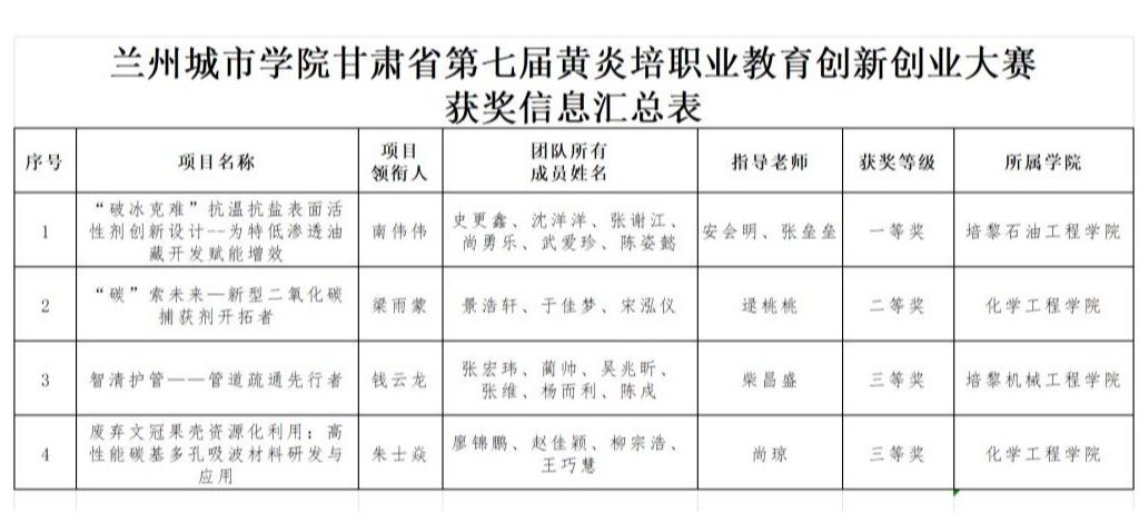 其中,培黎石油工程学院南伟伟团队项目《“破冰克难”抗温抗盐表面活性剂创新设计—为特低渗透油藏开发赋能增效》荣获一等奖、化学工程学院梁雨蒙团队项目《“碳”素未来—新型二氧化碳捕获剂开拓者》荣获二等奖、培黎机械工程学院钱云龙团队项目《智清护管——管道疏通先行者》和化学工程学院朱士焱团队项目《废弃文冠果壳资源化利用:高性能碳基多孔吸波材料研发与应用》分别荣获三等奖。本届大赛设置主题赛和专项赛两个赛项,经过初赛和网络评审的严格选拔,最终126支代表队、400余名选手晋级决赛。参赛项目涵盖现代科技、新能源开发、人工智能等经济社会发展的核心领域,充分展现了青年学子对科技发展趋势的敏锐洞察力和卓越的创新能力。
