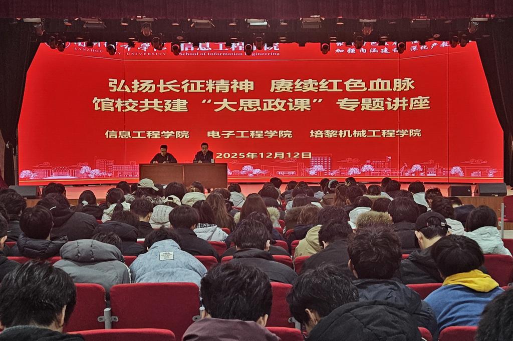 为高质量实施新时代立德树人工程,落实全省高校“传承红色基因、学思践悟中国共产党人精神谱系”宣讲巡讲活动要求,12月12日,信息工程学院党委联合榜罗会议纪念馆,在培黎校区大学生活动中心举办“弘扬长征精神 赓续红色血脉——榜罗会议的重要意义和历史地位”专题讲座。信息工程学院、电子工程学院、培黎机械工程学院800余名师生参加活动。