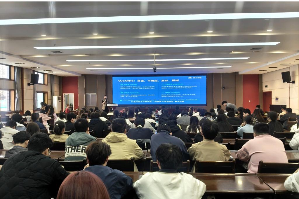 讲座中,中国民生银行支行行长孙煦以《新形势下就业导向及企业招聘视角解析》为题,结合多年招聘经验,深入分析了当前就业形势与企业用人标准,为同学们提供了实用的求职策略。国芳集团副总裁孟丽以《从校园到职场的进阶之路》为题,分享了自己从校园走向企业高管的成长经历,围绕心态转变、能力准备、职业选择等方面带来精彩讲授。两位嘉宾的讲座案例鲜活、内容丰富,现场气氛热烈,同学们纷纷表示获益良多。