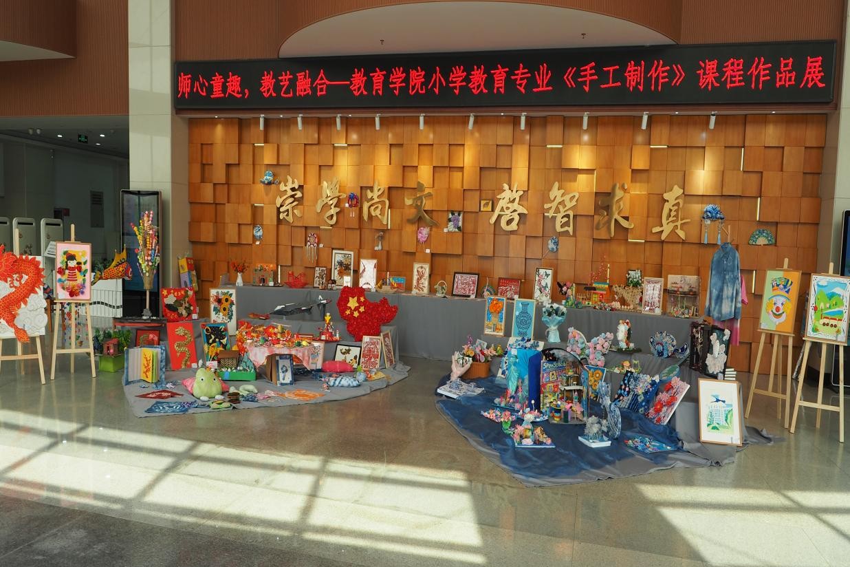 为深入落实小学教育专业全科培养目标,强化师范生艺术素养与实践能力,推动专业教育与美育深度融合,近日,由教育学院、学校图书馆联合主办的“师心童趣 教艺融合”——小学教育专业《手工制作》课程作品展在学校逸夫图书馆二楼专题大厅举行。展览面向全校师生开放,展期为3月16日至3月29日。