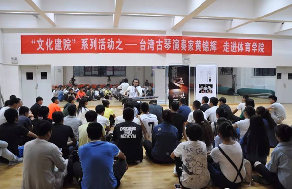 黄锦辉还为同学们演奏了《阳关三叠》,并与体育学院学生凌文杰一同演奏了《空》。他用自己对古琴的挚爱,讲述着古琴的故事,用琴音让每一位到场聆听的同学朋友们,感受着这份来自历史、来自非凡心灵的大爱。