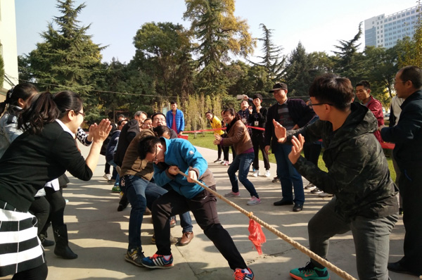 为丰富学院教职工业余文体生活,11月4日下午,化学与环境工程学院组织全院教职工在理科楼前及1203教室、1205教室分别举行了师生拔河、踢毽子、跳绳、棋类、乒乓球等比赛活动。活动中,全体教职工积极参加,热情高涨,精神抖擞,积极进取,发扬了友谊第一,比赛第二的精神,加强了交流,增进了友谊,锻炼了身体素质,培养了团队合作精神和集体荣誉感。
