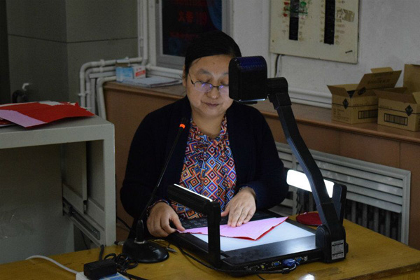“剪纸艺术讲座”由甘肃剪纸艺术大师何霞老师主讲。何霞老师分别从“剪纸的起源”、“剪纸的发展”、“剪纸的特点”等方面对中国传统剪纸艺术进行了精彩的讲解。在讲解过程中何霞老师还向同学们展示许多优秀的剪纸作品,让同学们直观地感受了剪纸艺术的无穷魅力。在剪纸互动实践环节,现场气氛活跃,同学们参与积极,很多同学用中国红剪出了自己人生的第一幅剪纸作品。