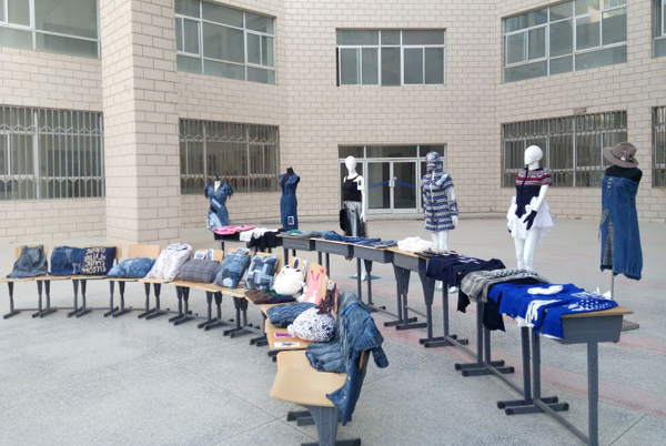 服装工艺制作课程展出了旧衣改造环节的作品。旧衣改造是环保时尚的新趋势。学生经过挑选、裁剪、拼接等步骤,完成了收集素材、寻找灵感、色彩提炼、材质设计、成衣应用全过程。旧衣换新颜增添了同学们的成就感,促进了整体服装设计能力的提高。