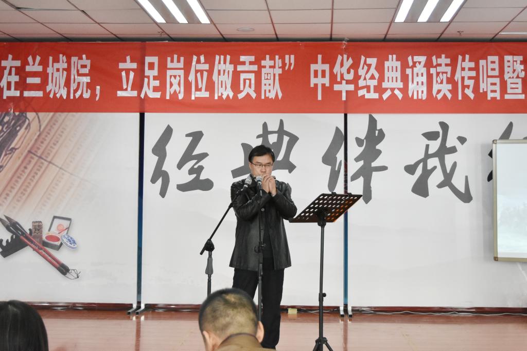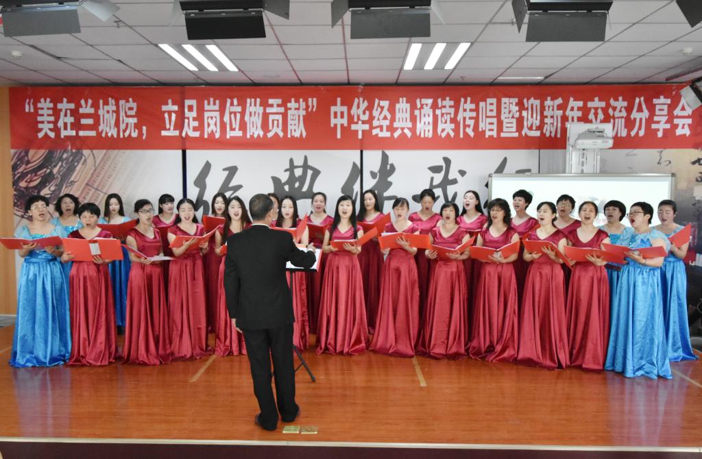 分享会由中华优秀传统文化吟诵传唱与校史、党史知识有奖问答两大板块组成。在吟诵传唱版块中,气势恢宏的配乐诗朗诵《满江红》、《黄河》、《沁园春﹒雪》、《祖国啊,我亲爱的祖国》,口琴串烧《苦难辉煌》,脍炙人口的三句半“美在兰城院,立足岗位做贡献”,赏诗歌吟诵《金陵酒肆离别》等11个节目相继上演,校工会教职工女声合唱团倾情奉献的合唱《大漠之夜》、《鸿雁》将分享会推向高潮;问答板块以中华优秀诗词看图猜诗和党史、校史知识问答的形式进一步增强分会教职工的文化自信,引发了大家浓厚的兴趣。