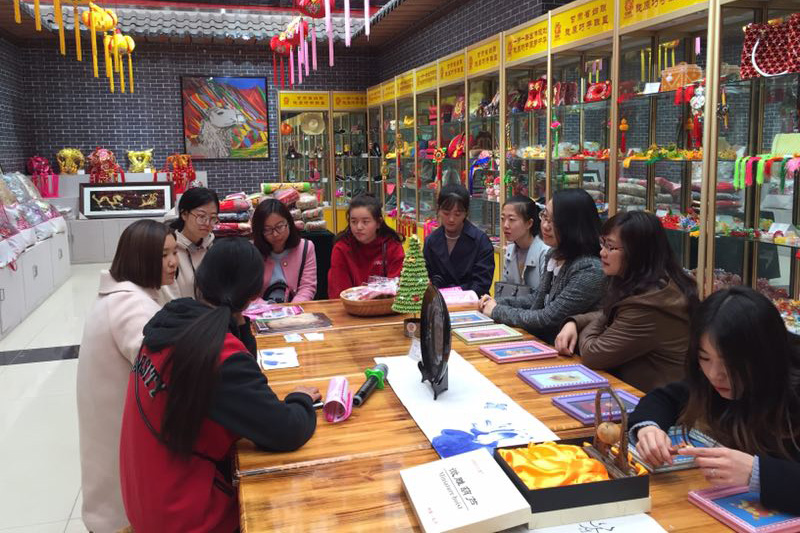 美术与设计学院师生一行参观了陇原巧手文化发展有限公司富有本土特色的展馆,与各位手艺传承人及大师进行了沟通交流。师生对剪纸、麦秆画、鞣皮等工艺表现出浓厚的兴趣,在大师的带领下进行了体验。