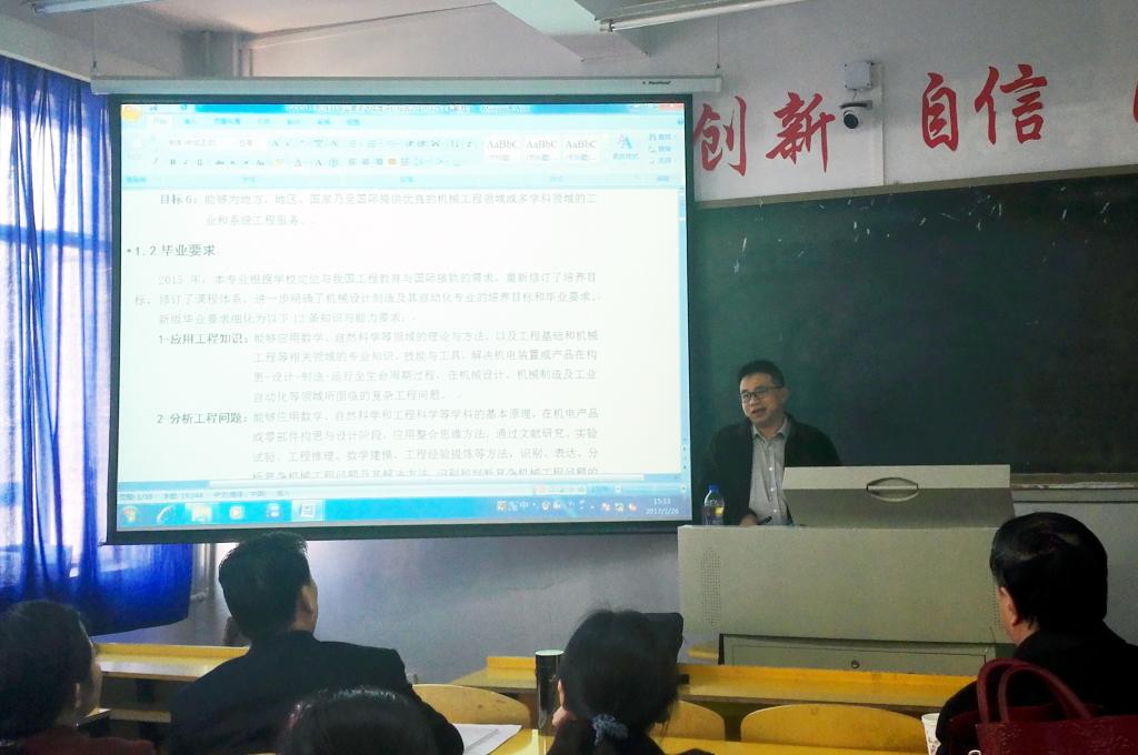 近日,汕头大学工学院副院长、博士生导师包能胜应培黎机械工程学院邀请来校,为学院教师作CDIO专业建设报告,并与学院教师研讨了学院新制定的2017人才培养方案。学院负责人、各专业负责人及专业骨干教师参加相关活动。