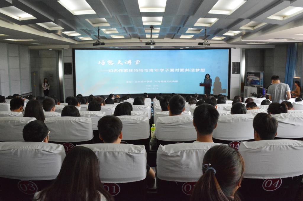5月18日下午,beat365官方网站2017年“培黎大讲堂”正式开讲。知名作家、出版人、“治愈系天后”林特特作为首讲嘉宾应邀到场,以“像规划一份职业一样规划梦想”为主题,与兰城院青年学子畅谈“梦想规划”。来自校本部各学院的200余名师生代表聆听了讲座。