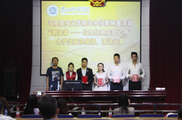 为深入贯彻中共中央、国务院《关于加强和改进新形势下高校思想政治工作的意见》,帮助青年大学生确立坚定的政治方向和马克思主义信仰。6月16日下午,由校团委、马克思主义学院、马中化教研室组织举办的首期“朗读者——红色经典在我心中”大学生配乐朗读、演讲比赛活动在校模拟法庭顺利举行。来自全校各学院的近60名同学参加了比赛。