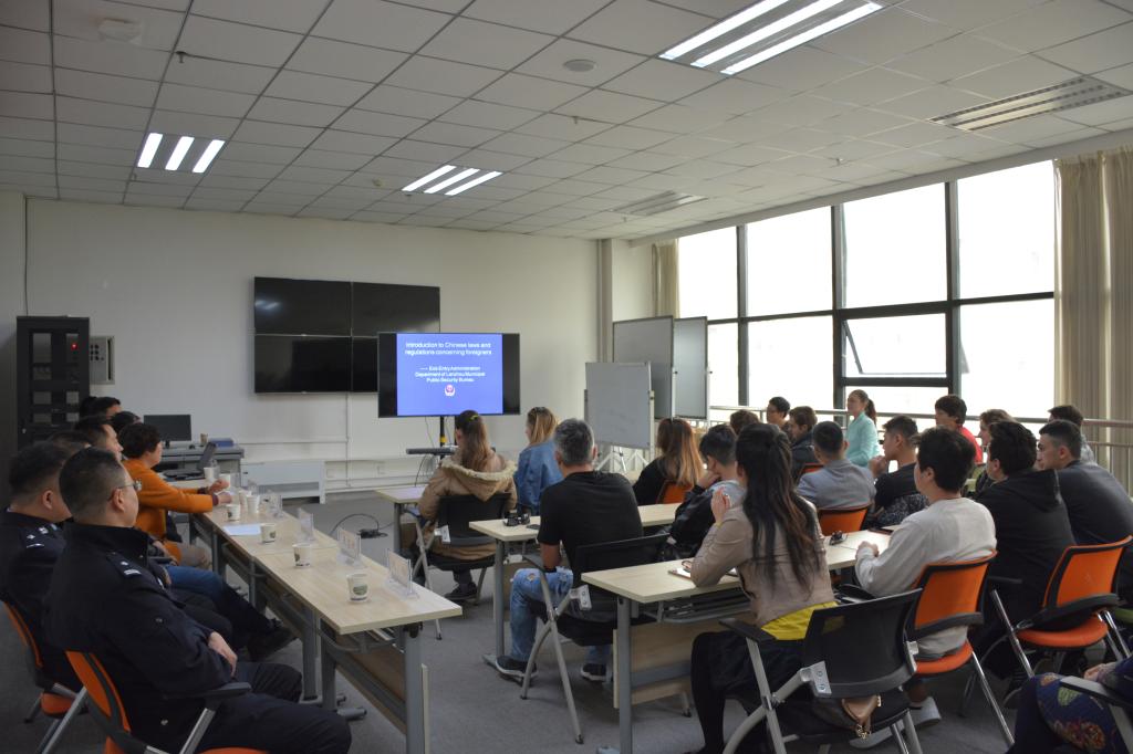 9月20日下午,应国际交流处的邀请,兰州市公安局出入境管理处副处长达钢,安宁分局出入境管理大队负责人牛为民及市局、安宁分局相关警官,给全体留学生讲解了《中华人民共和国出入境管理法》、《中华人民共和国治安管理处罚法》及签证政策和类型。
