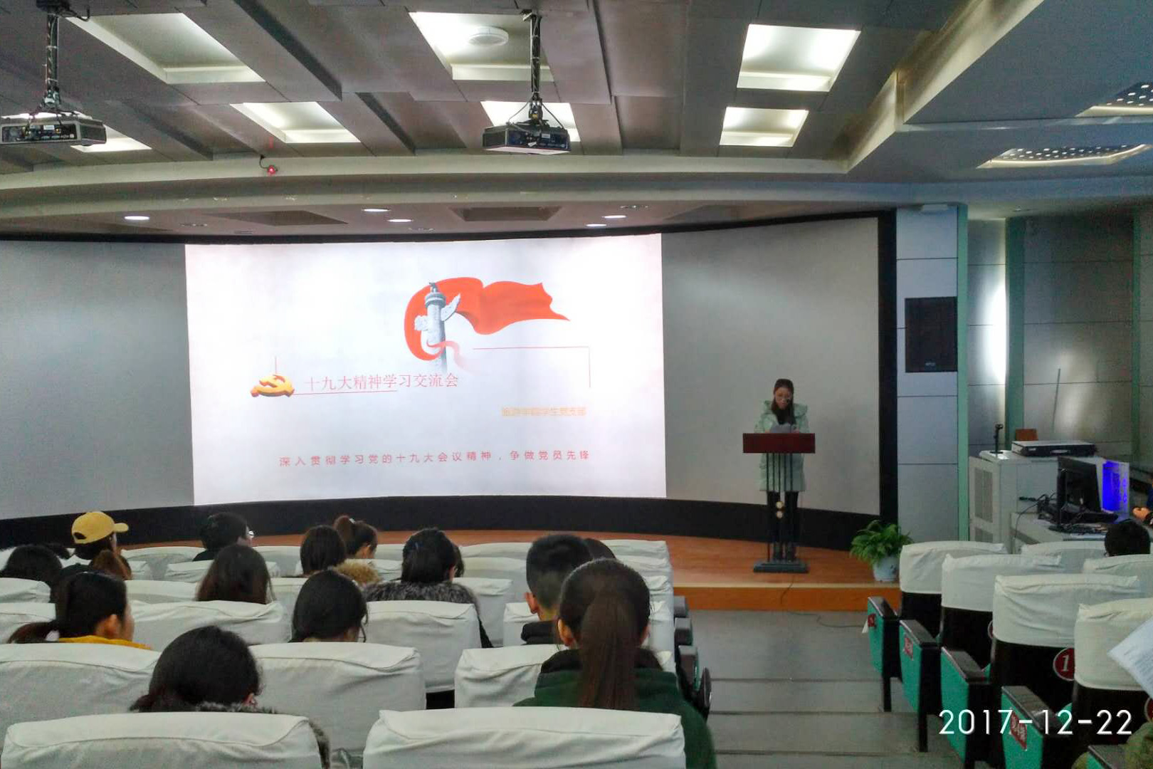 12月22日下午,旅游学院在校本部第一学术报告厅召开学生支部学习十九大精神交流会。