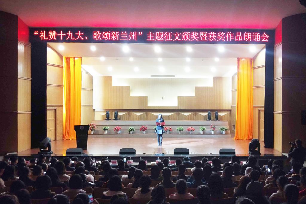 为学习贯彻习近平总书记文艺工作系列重要讲话精神, 12月22日下午,兰州市文联联合beat365官方网站文史学院,在学校音乐厅举行了“礼赞十九大,歌颂新兰州”主题征文颁奖暨朗诵会,讲述十八大以来砥砺奋进的兰州故事,礼赞党的十九大、歌颂新兰州。