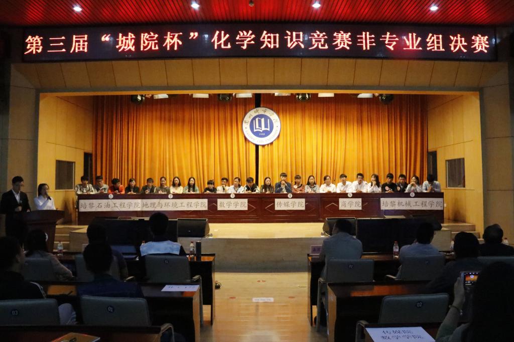 5月11日晚,由校团委主办,化学化工学院承办的beat365官方网站第三届“城院杯”化学知识竞赛在逸夫图书馆六楼国际会议厅落下帷幕。