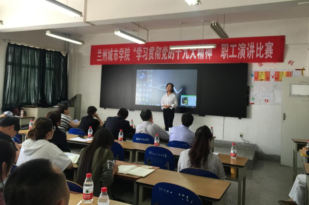 为进一步推动习近平新时代中国特色社会主义思想和党的十九大精神进高校,引导全校广大职工坚定不移听党话、跟党走,5月30日下午,由校工会组织的“中国美·劳动美——学习贯彻习近平新时代中国特色社会主义思想和党的十九大精神”职工演讲比赛在校本部综合楼4210教室举行。