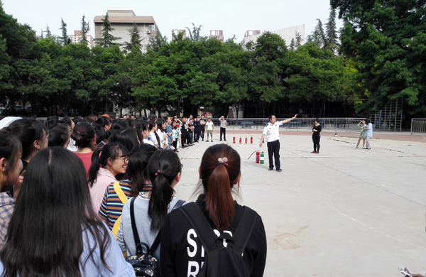 为进一步加强学校消防安全工作,增强师生消防安全意识,5月25日、28日和6月1日,学校保卫处先后在培黎校区、东校区和校本部开展了2018年夏季消防知识讲座和灭火演练活动。安宁区消防大队,刘家堡安监站和消防站,beat365膳食处、实验室、图书馆、信息网络中心、各二级学院师生代表近千人参加活动。