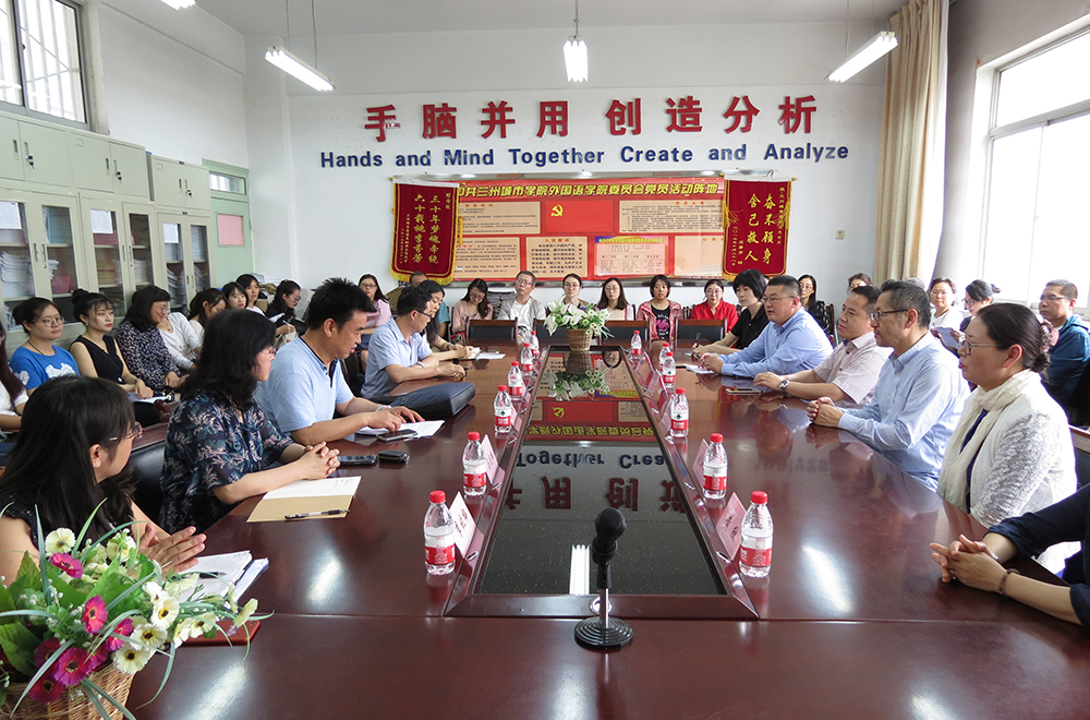 7月2日,应外国语学院和国际文化翻译学院的邀请,复旦大学教授、西北师范大学校长助理罗剑波,上海大学外国语学院副院长苗福光教授一行6人莅临beat365,就如何做好外语学科和专业建设、师资队伍建设,人才培养和教学改革等方面进行专门指导。外国语学院和国际文化翻译学院负责人,英语系、法语系、翻译系全体教师及大学英语教学部主任、副主任参加了座谈会。