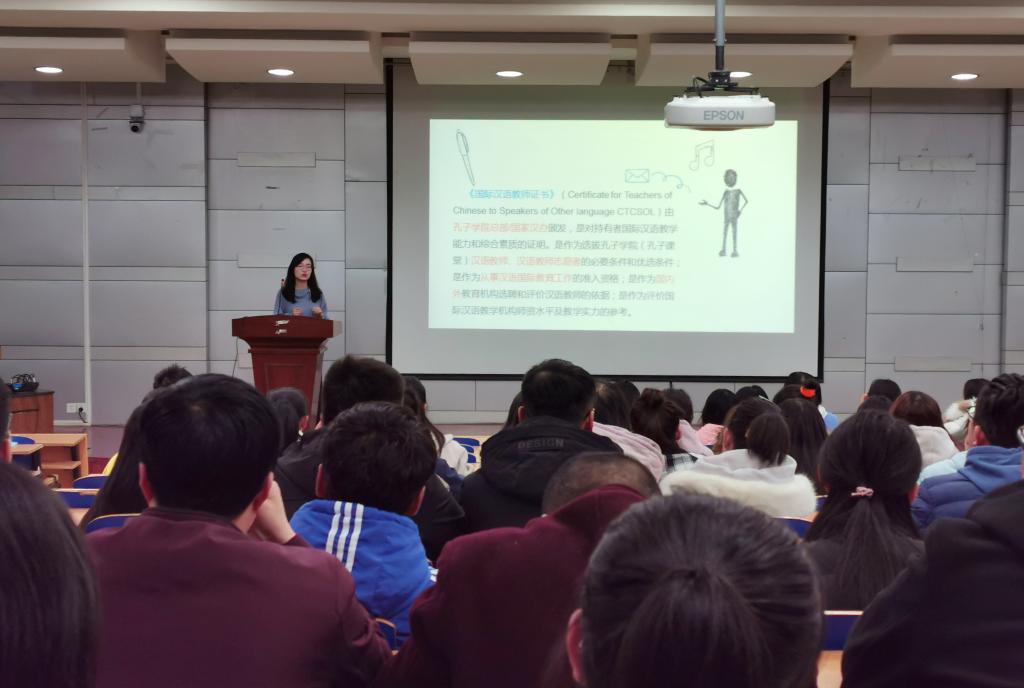 为促进就业工作,拓展就业渠道,11月19日下午,文史学院邀请兰州交通大学樊丹老师来校,作了题为《国际汉语教师证书考试的有关问题》的报告。