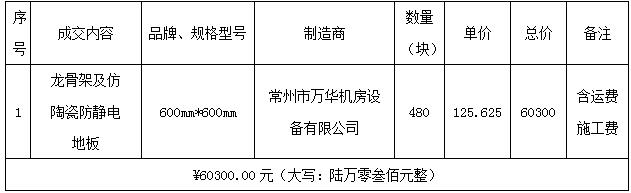 成交金额:¥60300.00元(大写:陆万零叁佰元整)