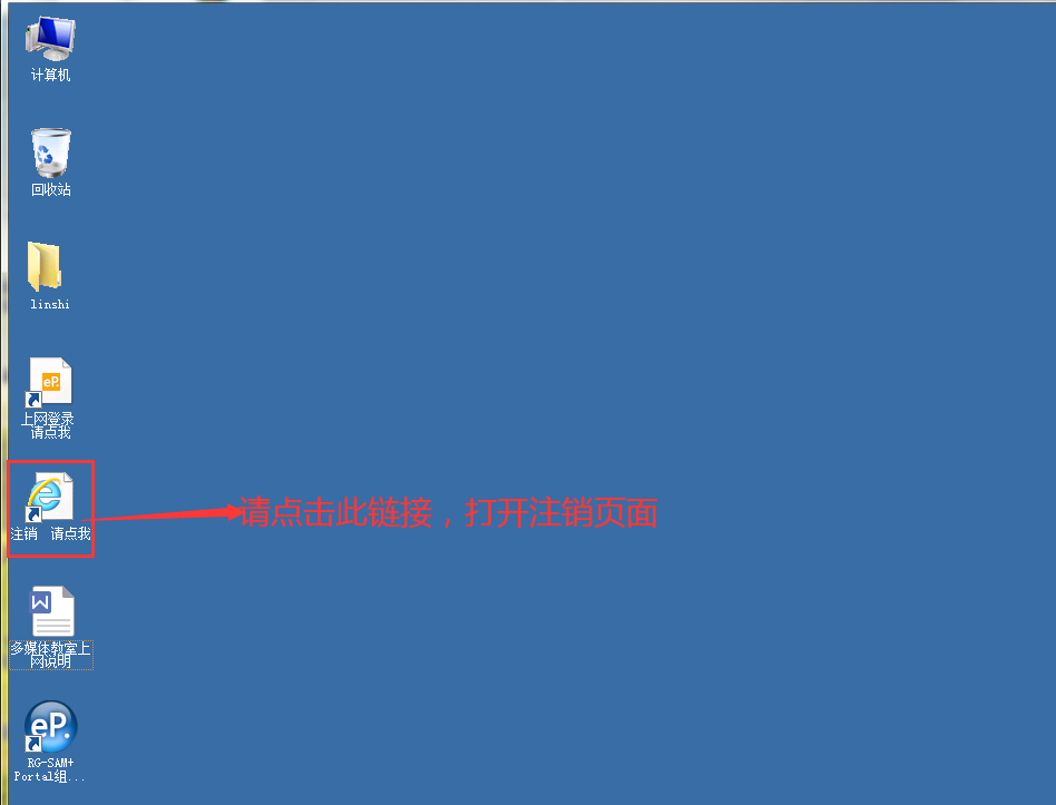 5.下课后,请双击桌面上的“注销请点我”链接打开注销页面。