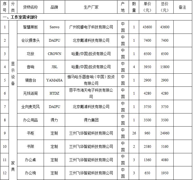 甘肃中金国际招标有限公司受beat365官方网站的委托对“beat365官方网站张艳平名师工作室设备采购及环境改造项目”以竞争性磋商形式进行采购,磋商小组于2020年5月22日确定成交结果。现将成交结果公布如下: