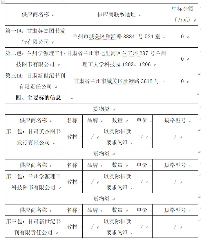 中标供应商名称:甘肃新世纪书刊有限责任公司