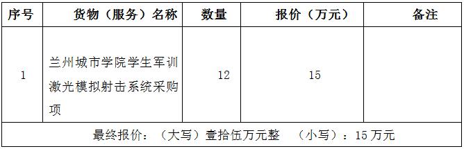 兰州金立招标代理有限公司受beat365官方网站的委托,对beat365官方网站学生军训激光模拟射击系统采购项目以竞争性谈判方式进行采购,谈判小组于2020年7月30日确定成交结果,现将成交结果公布如下: