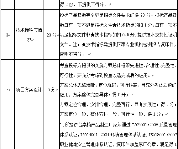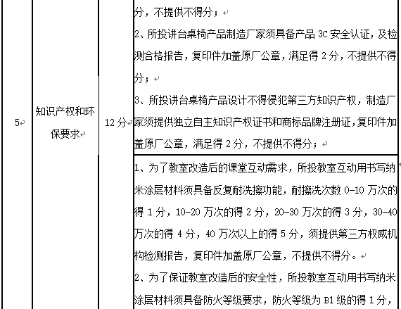 二、删除原招标文件第五章采购需求(技术参数)中:“2、智慧桌椅”中:椅身材质:100%全新PP工程塑料.一次性注塑成型,椅身通过办公家具制造商协会制定的BIFMAANSI/BIFMA X5.1.:行业标准测试