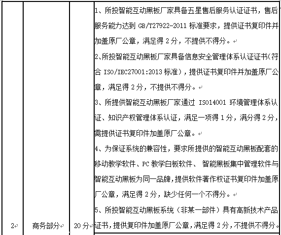 一、删除原招标文件第五章采购需求(技术参数)中:“1、智慧互动黑板(核心产品)”中:★产品采用全铝镁合金外框架构,外壳防护性能符合GB/T4208-2017标准。显示模组长寿命设计,具有快速散热和延缓光学黄化的性能,热扩散系数≥50mm²/S。测试标准满足:ASTME1461-13。(提供权威实验室出具的检测报告复印件加盖原厂公章)