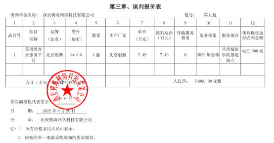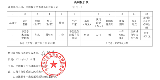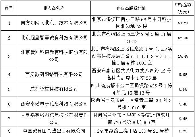 收费标准:成交单位参照国家计委颁发的《招标代理服务收费管理暂行办法》(计价格[2002]1980号)、《国家发展改革委办办公厅关于招标代理服务费收费有关问题的通知》(发改办价格[2003]857号)规定的货物类标准向甘肃西招国际招标有限公司缴纳招标代理服务费