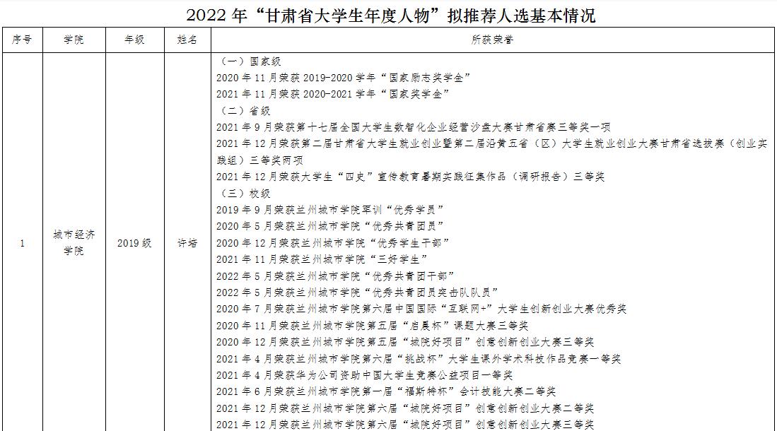 附件:2022年“甘肃省大学生年度人物”拟推荐人选基本情况