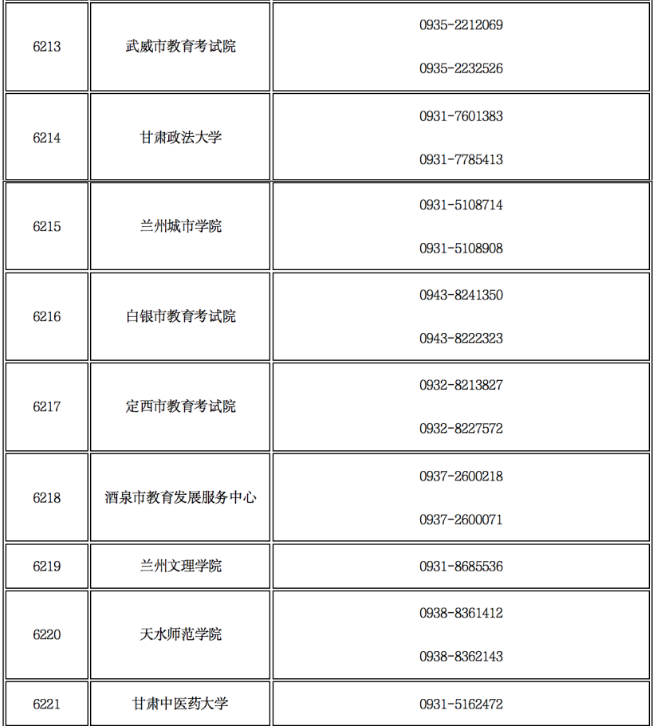 附件:甘肃省2023年全国硕士研究生招生考试各报考点联系电话