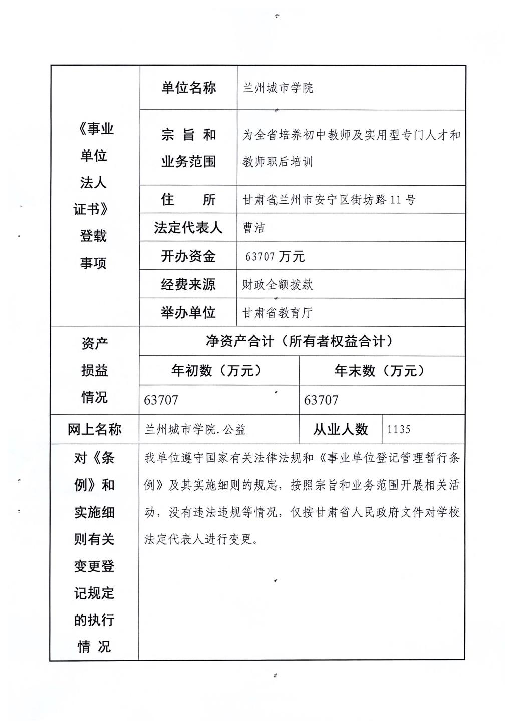 根据甘肃省事业单位登记管理局相关要求,现将beat365官方网站《事业单位法人年度报告书》公示如下。