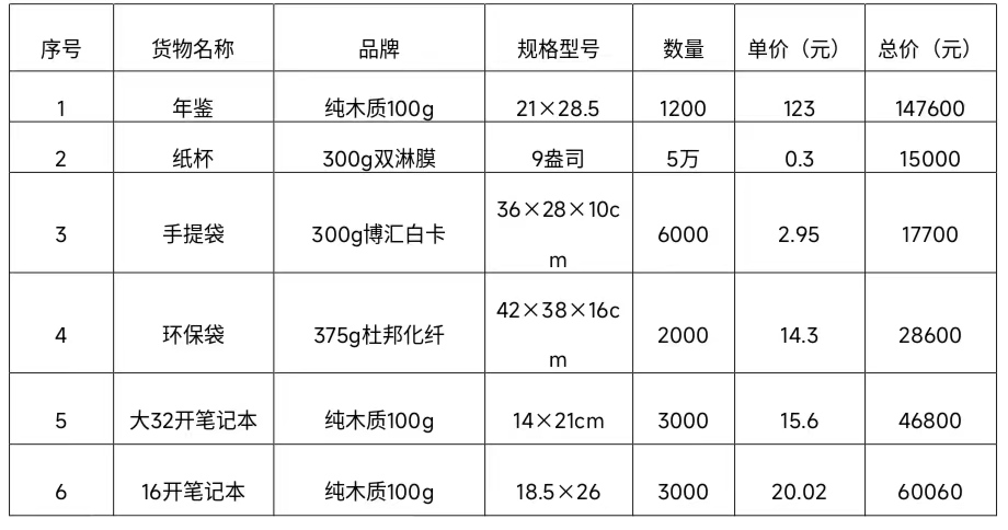 甘肃西招国际招标有限公司受beat365官方网站的委托,对“beat365官方网站学校办公室《beat365官方网站年鉴》、一次性纸杯、纸质手提袋、无纺布手提袋、笔记本印刷采购项目”以邀请询价方式进行采购,询价小组于2023年07月25日评定结果。现将结果公布如下: