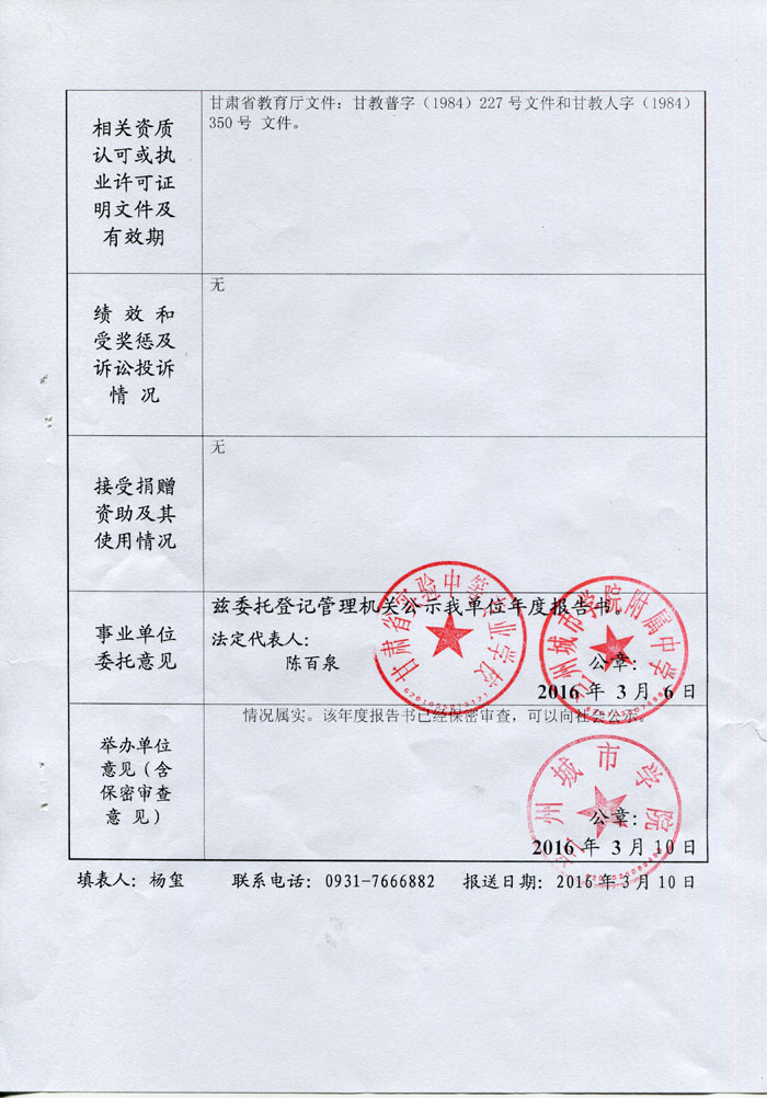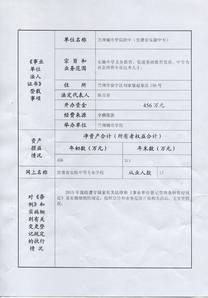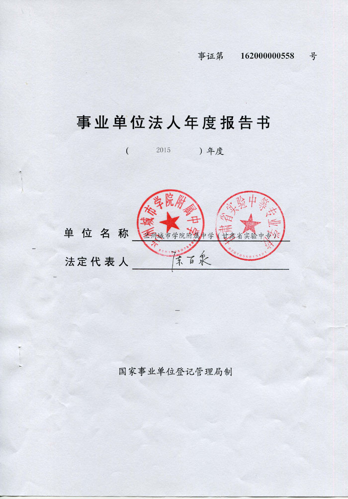 现将《beat365官方网站附属中学(甘肃省实验中等专业学校)事业单位法人年度报告书》予以公示,如有不实,请以书面形式向beat365官方网站人事处反映。