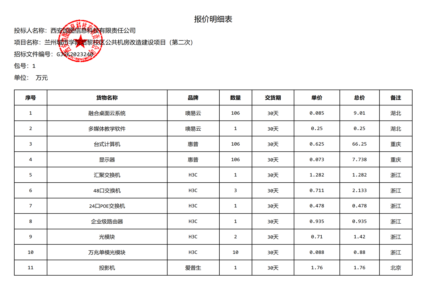 中标 金额 (万元) |