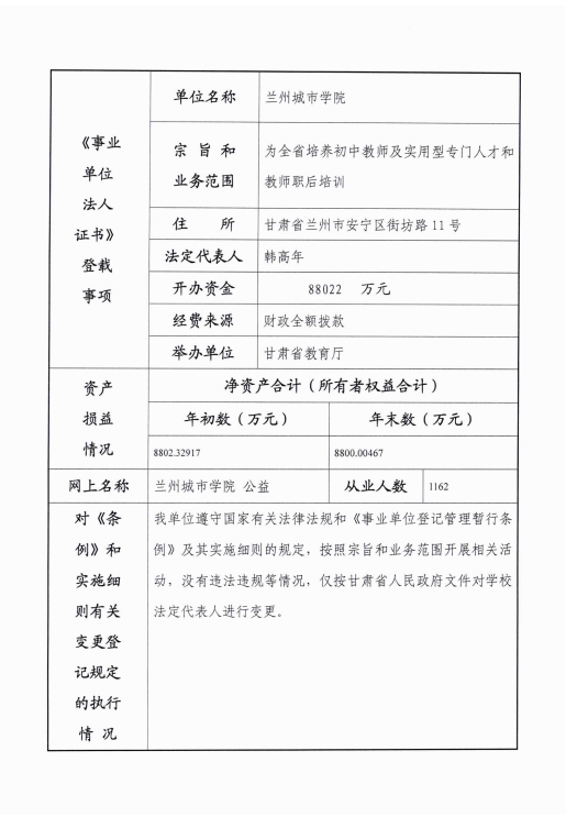 根据甘肃省事业单位登记管理局相关要求,现将beat365官方网站《事业单位法人年度报告书》公示如下。